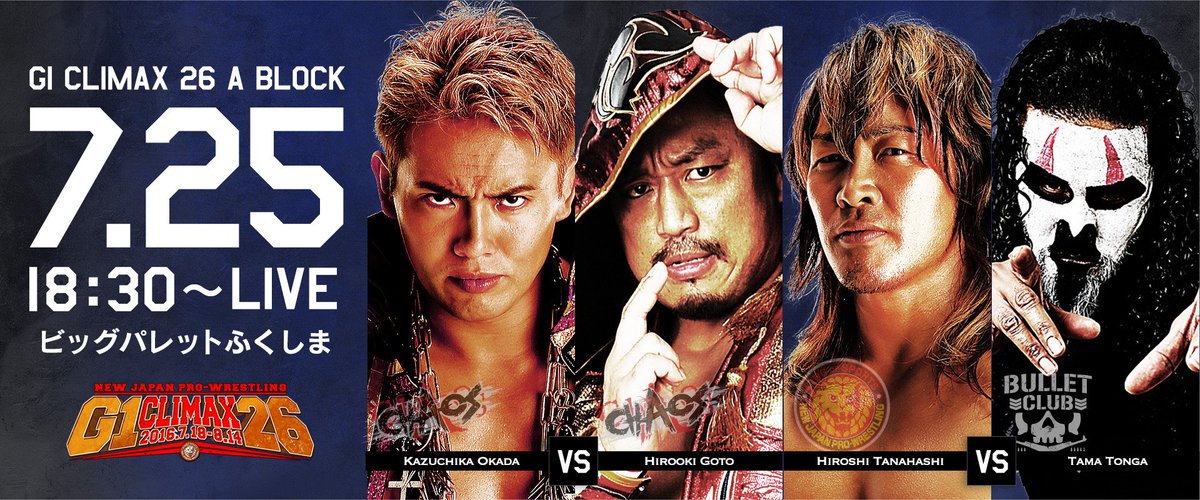 18.07. - 12.08.2016 - C4rnifex - 18.07.2016 [Bild: https://pbs.twimg.com/media/CmgiZaXUcAA-r5H.jpg] NJPW "G1 Climax 26": Tag 1 18.07.16 Hokkaido Prefectural Sports Center Kitayell Hokkaido 8-Man Tag Team Tiger Mask IV, Jushin Thunder Liger, Manabu Nakanishi & Katsuyori Shibata besiegten Captain New Japan, Ryusuke Taguchi, KUSHIDA & Tomaki Honma mit dem Hercules Cutter (Argentine Neckbreaker) von Nakanishi an CNJ [10:39] Tag Team Katsuhiko Nakajima & Toru Yano besiegten Juice Robinson & Satoshi Kojima mit dem Vertical Spike von Nakajima an Robinson [09:37] Tag Team BULLET CLUB (Kenny Omega & Yujiro Taguchi) besiegten CHAOS (YOSHI-HASHI & Gedo) mit Tokyo Pimps (Sitout inverted front powerslam) von Takahashi an Gedo [10:09] 6-Man Tag Team LOS INGOBERNABLES de JAPON (BUSHI, EVIL & Tetsuya Naito) besiegten David Finlay, Michael Elgin & Yuji Nagata mit dem MX (Diving double knee facebreaker) von BUSHI am Finlay [12:04] Block Matches: (A-Block) Hiroyoshi Tenzan besiegte Tomohiro Ishii mit dem Moonsault Press [14:08] {2 | 0} Togi Makabe besiegte Tama Tonga mit dem King Kong Kneedrop (diving Kneedrop) [10:37] {2 | 0} Hirooki Goto besiegte Bad Luck Fale mit dem GTR (Lariat into a backbreaker) [09:18] {2 | 0} SANADA besiegte Hiroshi Tanahashi mit dem Skull End [19:30] {2 | 0} Naomichi Marufuji besiegte Kazuchika Okada mit dem Pole Shift [19:07] {2 | 0} Zitat:Marufuji: "It's been a while, NJPW fans. I know some of you might not know me now. But you'll remember me by summer's end. Okada was great. You could search the world & not find anyone like him. But! This summer is mine." [Bild: https://pbs.twimg.com/media/Cno983UUsAAWCHh.jpg][Bild: https://pbs.twimg.com/media/Cno-iN5UAAA3FgW.jpg] - Blubb - 18.07.2016 Das hat Okadas Status ganz schön relativiert. Wenn er nach vielen anstrengenden Kampftagen so eine Niederlage gegen Marufuji kassiert hätte, dann wäre das was anderes. Aber so? Naja, wenigstens ein kleiner Push für NOAH, der sicher ein baldiges Rematch mit umgekehrtem Ergebnis nach sich zieht. - C4rnifex - 18.07.2016 Ich hatte anders getippt, war aber nicht so überrascht mit den Gewinnern (besonders SANADA und Marufuji hatte ich genau andersrum). Tenzan hat (mithilfe von Ishii) auch ein gutes Match abgeliefert, Highlight waren aber Semi- und Mainevent. Marufuji wird dann bestimmt noch einen Shot auf den Heavyweight Titel bekommen vor WK 11. - C4rnifex - 20.07.2016 [Bild: https://pbs.twimg.com/media/CnuhvdEUAAAYYpc.jpg] NJPW "Super J-Cup": Runde 1 20.07.16 Korakuen Hall Tokyo Matt Sydal (ROH) besiegte Kaji Tomato (K-Dojo) mit der Air Sydal (Shooting Star Press) [07:56] Kenou (NOAH) besiegte Gurukun Mask (Ryukyu Dragon Pro) mit dem Ragou (Cross-armed Gory special flipped into a sitout powerbomb) [11:33] Taichi (Suzuki-gun) besiegte Yuma Aoyagi (AJPW) mit der Taichi-shiki Powerbomb (Sitout powerbomb) [12:05] Jushin Thunder Liger (NJPW) besiegte Eita (Dragon Gate) mit dem Vertical Drop Brainbuster [09:12] Will Ospreay (CHAOS) besiegte Titán (CMLL) mit dem Oscutter (Springboard Cutter) [09:14] Yoshinobu Kanemaru (Suzuki-gun) besiegte BUSHI (LIdJ) mit dem Touch-Out (Twisting Brainbuster) [10:25] Ryusuke Taguchi (NJPW) besiegte Daisuke Harada (NOAH) mit dem Dodon's Throne (Double chickenwing double knee gutbuster) [14:56] KUSHIDA (NJPW) besiegte Taiji Ishimori (NOAH) mit dem Hoverboard Lock [16:26] [Bild: https://pbs.twimg.com/media/Cnz1ZMrVYAE4FIO.jpg][Bild: https://pbs.twimg.com/media/Cnz1LRwUMAAHa8b.jpg] ____________________ Am 21.08. lautet das Viertelfinale damit: Taichi vs Jushin Thunder Liger Kenou vs KUSHIDA Yoshinobu Kanemaru vs Ryusuke Taguchi Matt Sydal vs Will Ospreay - C4rnifex - 22.07.2016 *Bin das Wochenende über nicht da und wäre sehr dankbar wenn jemand für heute + den 23. und 24.07. die Ergebnisse des G1-Climax (wenn auch nur die Block Resultate) hier "eintragen" würde. :winke: - Blubb - 22.07.2016 NJPW G1 Climax 26: Tag 2 22.07.16 Tokio 6-Man Tag Team Hiroyoshi Tenzan, Manabu Nakanishi & Satoshi Kojima besiegten Captain New Japan, David Finlay & Juice Robinson via Lariat von Satoshi Kojima gegen Captain New Japan [5:34] 6-Man Tag Team Hirooki Goto, Naomichi Marufuji & Tomohiro Ishii besiegten BULLET CLUB (Bad Luck Fale, Tama Tonga & Yujiro Takahashi) via Shiranui von Naomichi Marufuji gegen Yujiro Takahashi [09:05] 6-Man Tag Team Hiroshi Tanahashi, KUSHIDA & Ryusuke Taguchi besiegten Jushin Thunder Liger, Tiger Mask IV & Togi Makabe via Japanese Leg-Roll Clutch Hold von KUSHIDA gegen Tiger Mask IV [7:40] Tag Team LOS INGOBERNABLES de JAPON (BUSHI & SANADA) besiegten CHAOS (Gedo & Kazuchika Okada) via MX von BUSHI gegen Gedo [8:05] Block Matches: (B-Block) Katsuhiko Nakajima besiegte Toru Yano via Vertical Spike {(2) | (0)} [3:51] YOSHI-HASHI besiegte Kenny Omega via Karma {(2) | (0)} [12:16] EVIL besiegte Michael Elgin via EVIL {(2) | (0)} [10:54] Yuji Nagata besiegt Tetsuya Naito via Backdrop Hold {(2) | (0)} [15:32] Tomoaki Honma besiegte Katsuyori Shibata via Kokeshi {(2) | (0)} [11:11] Quelle: PUROLOVE - Blubb - 23.07.2016 NJPW G1 Climax 26: Tag 3 23.07.16 Machida 8-Man Tag Team Jushin Thunder Liger, Manabu Nakanishi, Satoshi Kojima & Tiger Mask IV besiegten Captain New Japan, David Finlay, Juice Robinson & KUSHIDA via Lariat von Satoshi Kojima gegen David Finlay [8:01] Tag Team Katsuhiko Nakajima & YOSHI-HASHI besiegten Katsuyori Shibata & Tomoaki Honma via Cradle von YOSHI-HASHI gegen Tomoaki Honma [6:52] Tag Team BULLET CLUB (Kenny Omega & Yujiro Takahashi) besiegten CHAOS (Gedo & Toru Yano) via DDT von Yujiro Takahashi gegen Gedo [9:04] 6-Man Tag Team LOS INGOBERNABLES de JAPON (BUSHI, EVIL & Tetsuya Naito) besiegten Michael Elgin, Ryusuke Taguchi & Yuji Nagata via EVIL von EVIL gegen Ryusuke Taguchi [8:44] Block Matches: (A-Block) Hiroyoshi Tenzan besiegte Tama Tonga via Moonsault Press {(4) | (0)} [10:31] Hirooki Goto besiegte Tomohiro Ishii via GTR {(4) | (0)} [11:49] Bad Luck Fale besiegte Naomichi Marufuji via Grenade {(2) | (2)} [9:36] Kazuchika Okada besiegte S