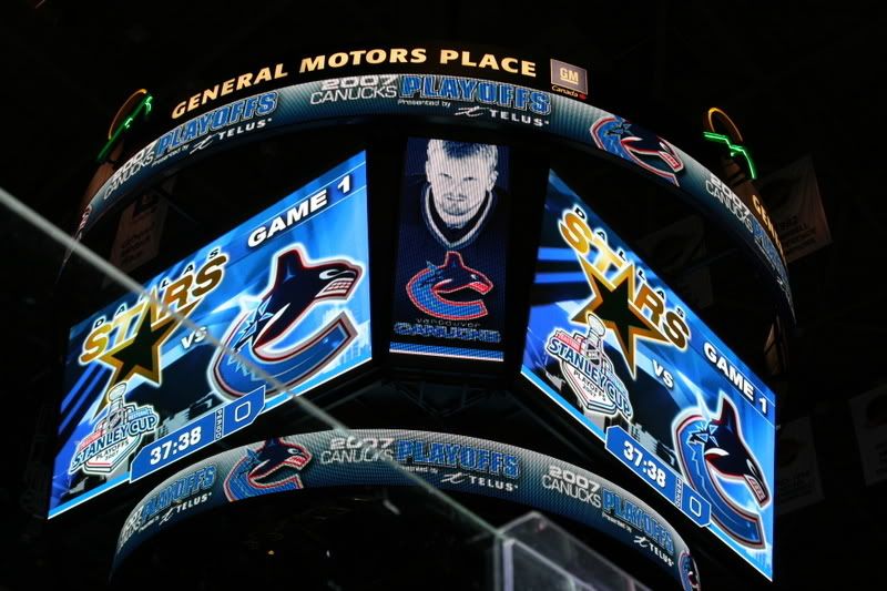 -OH MY GOD, WHAT A GAME! Was war das fuer ein Spiel im GM Place gestern? Man sagt das erste Spiel einer Serie ist ein Anhaltspunkt wie die gesamte Series wird, wenn das hier zutrifft, dann werden uns noch etliche spannende und knappe Spiele bevorstehen. In einem Marathon Match das ueber 4 Overtime`s ging, konnten am ende die Canucks mit 5-4 gewinnen. Das Spiel ist das sechst laengste Spiel der NHL Geschichte gewessen, es ging ueber 4 Overtime`s und ueber 5 Stunden, es begann um 7:11pm und endete erst um 12:35am! Die Stars schossen dabei 76 mal aufs Tor, die Canucks nur 56 mal, Roberto Luongo machte am ende 72 saves (was fuer ihn ebenfalls persoenlicher Record ist). Henrik Sedin erzielte dagegen nur eine Minute und 54 Sekunden vor dem ende der vierten Overtime das Game Winning Goal. Zuvor trafen fuer die Canucks Bryan Smolinski, Markus Naslund und im Powerplay Daniel Sedin und Mattias Ohlund. Fuer die Stars trafen in der regulaeren Zeit Antti Miettinen, Ladislav Nagy, Brenden Morrow sowie Trevor Daley. Fuer die Canucks stand zudem zum ersten Ryan Kesler wieder auf dem Eis, er war seit Januar nichtmehr dabei. Die drei Stars des Spiels waren dann auch am ende Roberto Luongo, Roman Turek und Henrik Sedin. Wenn die Spiele auch nur annaehrend so weiter gehen, dann wird der Sieger der Series in Runde 2 ziemlich erschoepft sein, Spiel 2 geht jedenfalls am Freitag wieder im GM Place ueber die Buehne. Im uebrigen waren einige Dallas Spieler so dehydriert nachdem Spieler, das sie auf tragen das GM Place verlassen haben, Vorteil fuer Spiel 2 fuer uns.