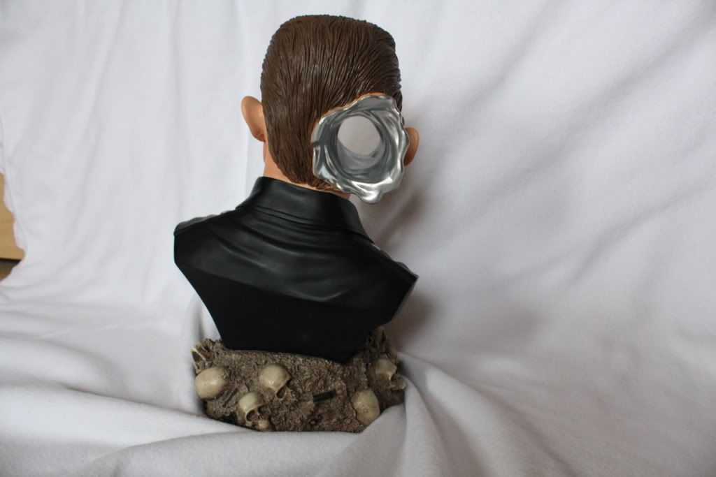 Bust war damals bei Sammlern wohl eher unbeliebt. Hatte das erst in nem Forum gelesen nachdem ich bei eBay zugeschlagen hatte. Und bin froh das es in dieser Reihenfolge passieret den mir gefällt die Bust. Die Kritikpunkte das dass "Loch" nicht gut aussieht und der T-1000 um das Loch herum zu verformt wäre kann ich nicht ganz verstehen bin der Meinung das es eigentlich ganz gut gelungen ist.