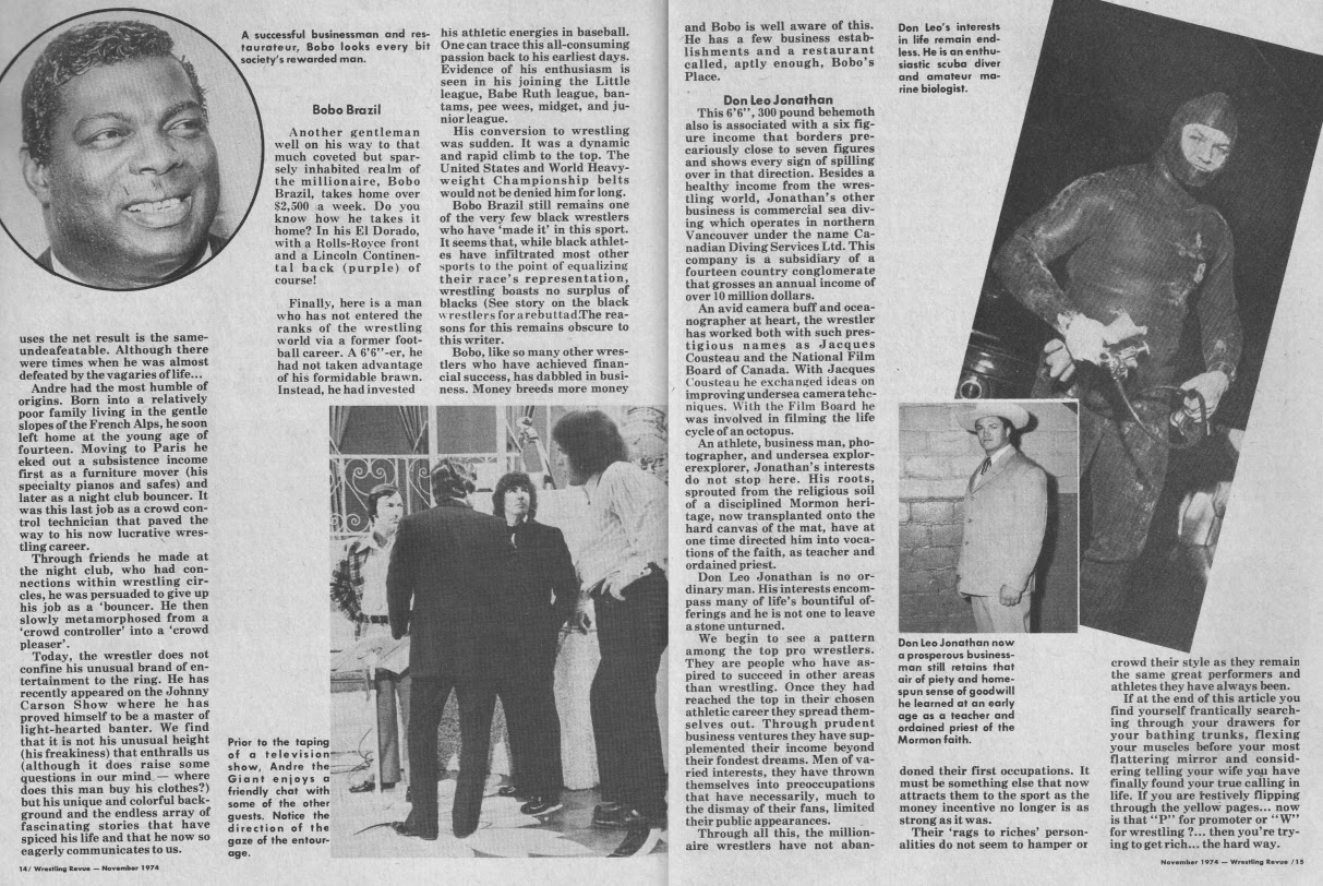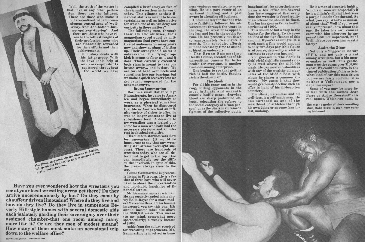 Ein old school Artikel von 1974 ueber die reichsten und best bezahltesten Wrestler. Die Einkommen stimmen nicht ganz, und es fehlen einige.