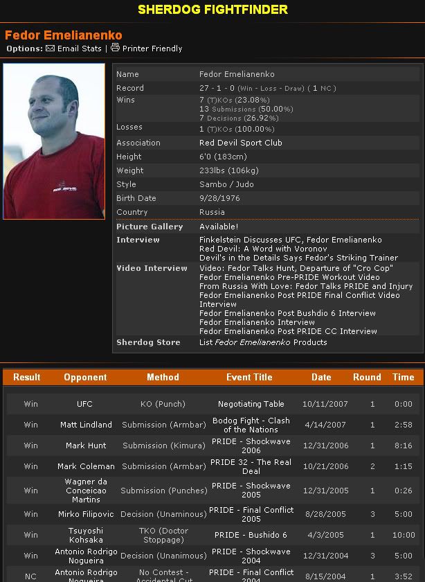 Sherdog hat schon den Fight Record von Fedor geaendert.