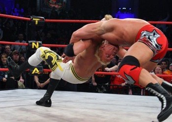 ;) Hm halt diesen Side Slam Rock Bottom ... oder halt den Double Underhook Face Slam/Buster Pedigree ... you get it.