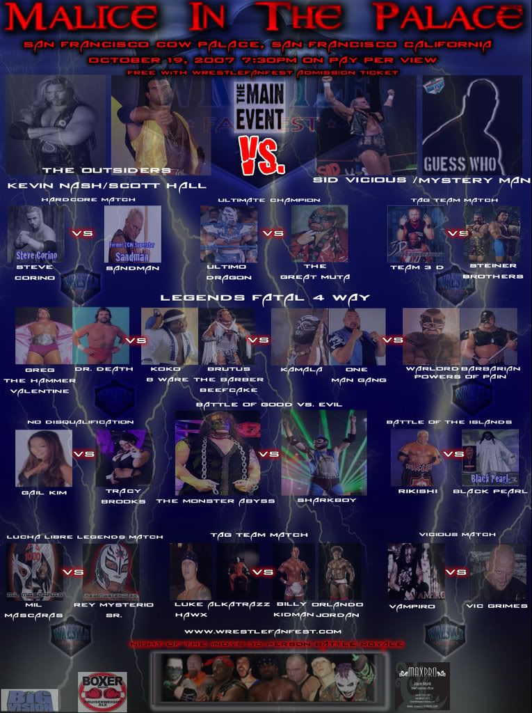 Am 19 October findet im Cow Palace von San Francisco eine der groessten nicht WWE und TNA Wrestling PPV`s des Jahres in den USA statt. Im Main Event gibt es eine Reunion der Outsiders gegen Sid Vicious und einen Mystery Partner, und auch sonst findet man auf der Card jede Menge bekannte Gesichter.